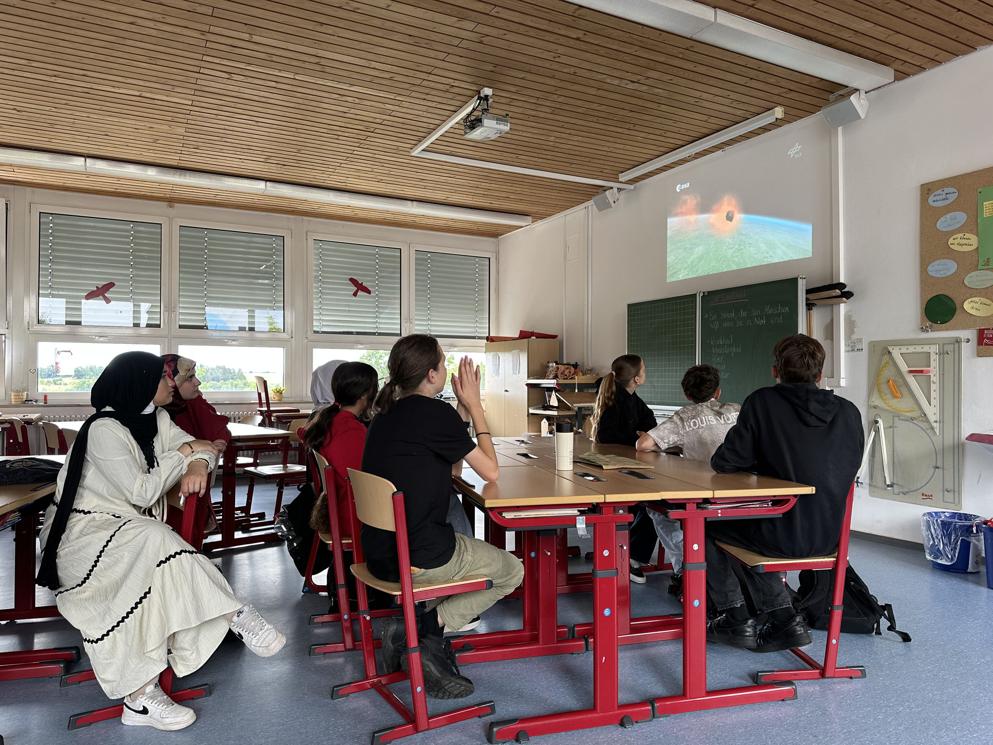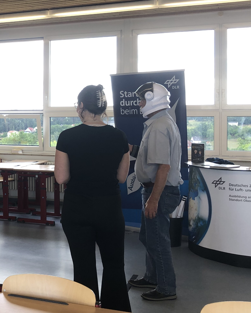 Einen ganz besonderen, spannenden und abwechslungsreichen Tag hatten wir zum Ende des Schuljahres mit dem Besuch des Space Buzz aus dem deutschen Luft- und Raumzentrums Oberpfaffenhofen. Die Attraktion war ein ca. halbstündiger VR-Flug durch das All. An vielen weiteren Stationen wurden die Themen Raumfahrt und Weltraum aufgegriffen. Kreativ, spielerisch und kulinarisch beschäftigten sich so alle SchülerInnen der Mittelschule Weltall.
